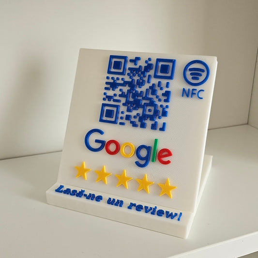 Stand cu cod QR și NFC pentru recenzii Google Maps