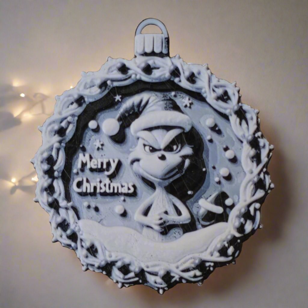 Acest glob este imprimat 3D și realizat din plastic biodegradabil, ceea ce înseamnă că nu doar arată minunat, dar este și prietenos cu mediul! Designul său detaliat și combinația de culori alb-negru îl fac un accesoriu ideal pentru oricare brad de Crăciun. 🌟