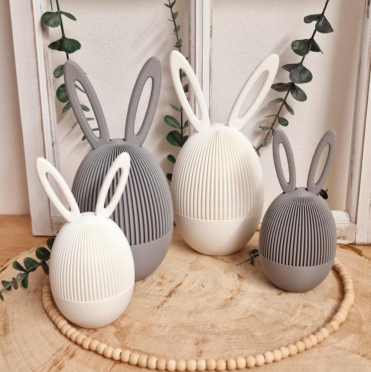 Transformă decorul de Paște cu aceste ouă elegante, inspirate de stilul Japandi! 🐇 Aceste decorațiuni sunt mai mult decât simple ornamente; ele se deschid pentru a dezvălui un container generos în care poți ascunde dulciuri sau mici surprize. Cu un design unic, partea inferioară este texturată și partea superioară cu nervuri se însurubează ușor, oferindu-ți două versiuni, cu sau fără urechi drăgălașe de iepure. Disponibile în dimensiuni mari și mici, aceste piese sunt ideale pentru a aduce un strop de bucurie și creativitate.