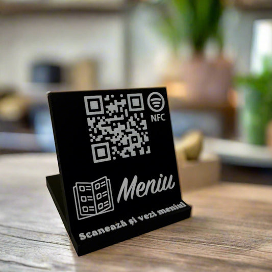Stand cu cod QR multifuncțional personalizat, cu NFC