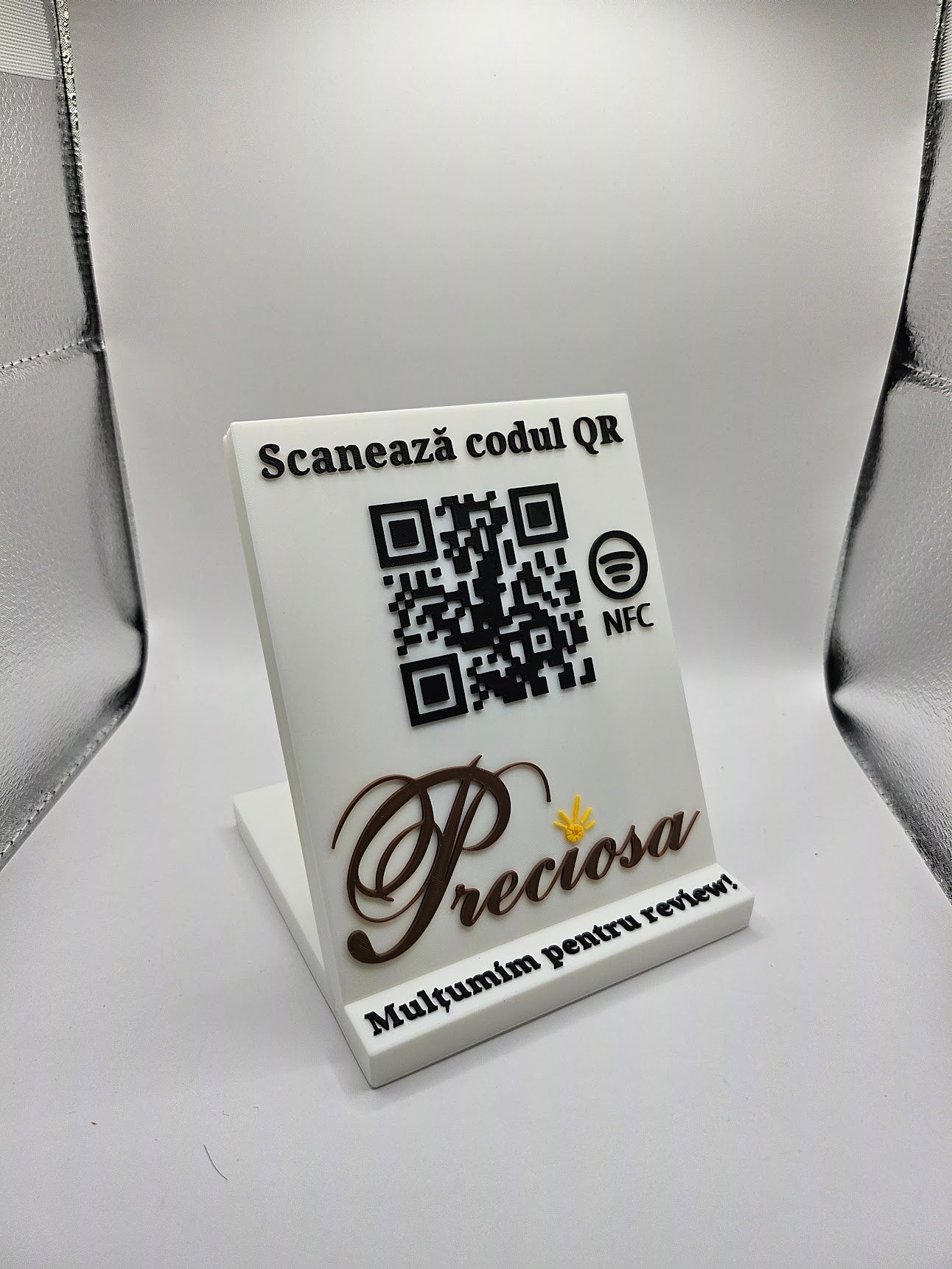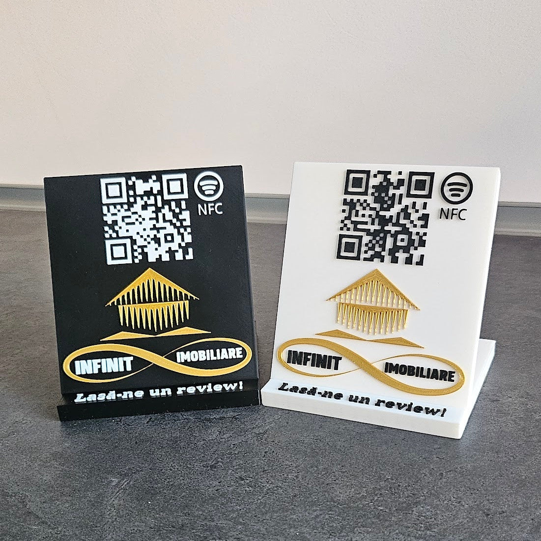 Statuete și suporturi personalizate 3d cu cod QR și NFC pentru recenzii, website și promovarea brandului tău