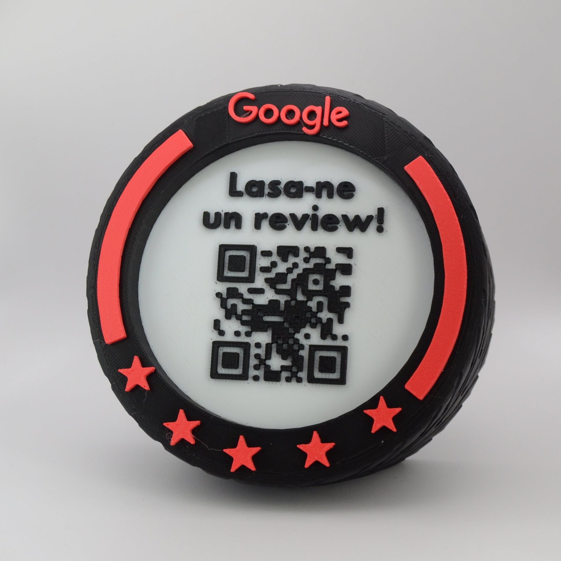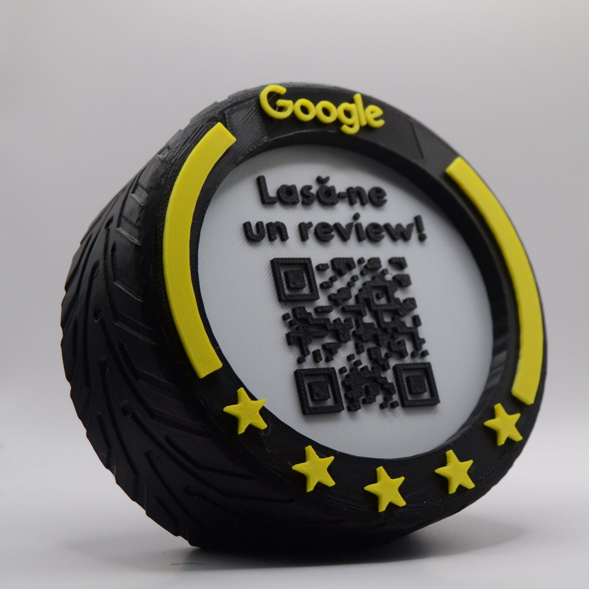 Stand cu cod QR pentru recenzii Google, cu NFC, model roată F1, diverse culori