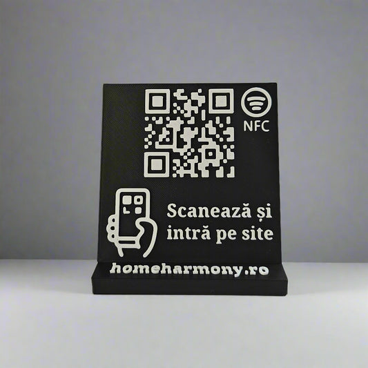 Dacă dorești personalizarea standului cu nume, logo sau alte detalii, comandă Standul QR cu NFC personalizat.