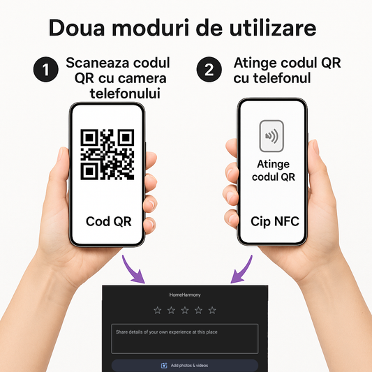 Permiteți clienților să lase review-uri foarte facil și creșteți astfel numărul de review-uri pozitive. Printr-un scan clienții ajung direct în pagina din google maps unde pot lasă un review.