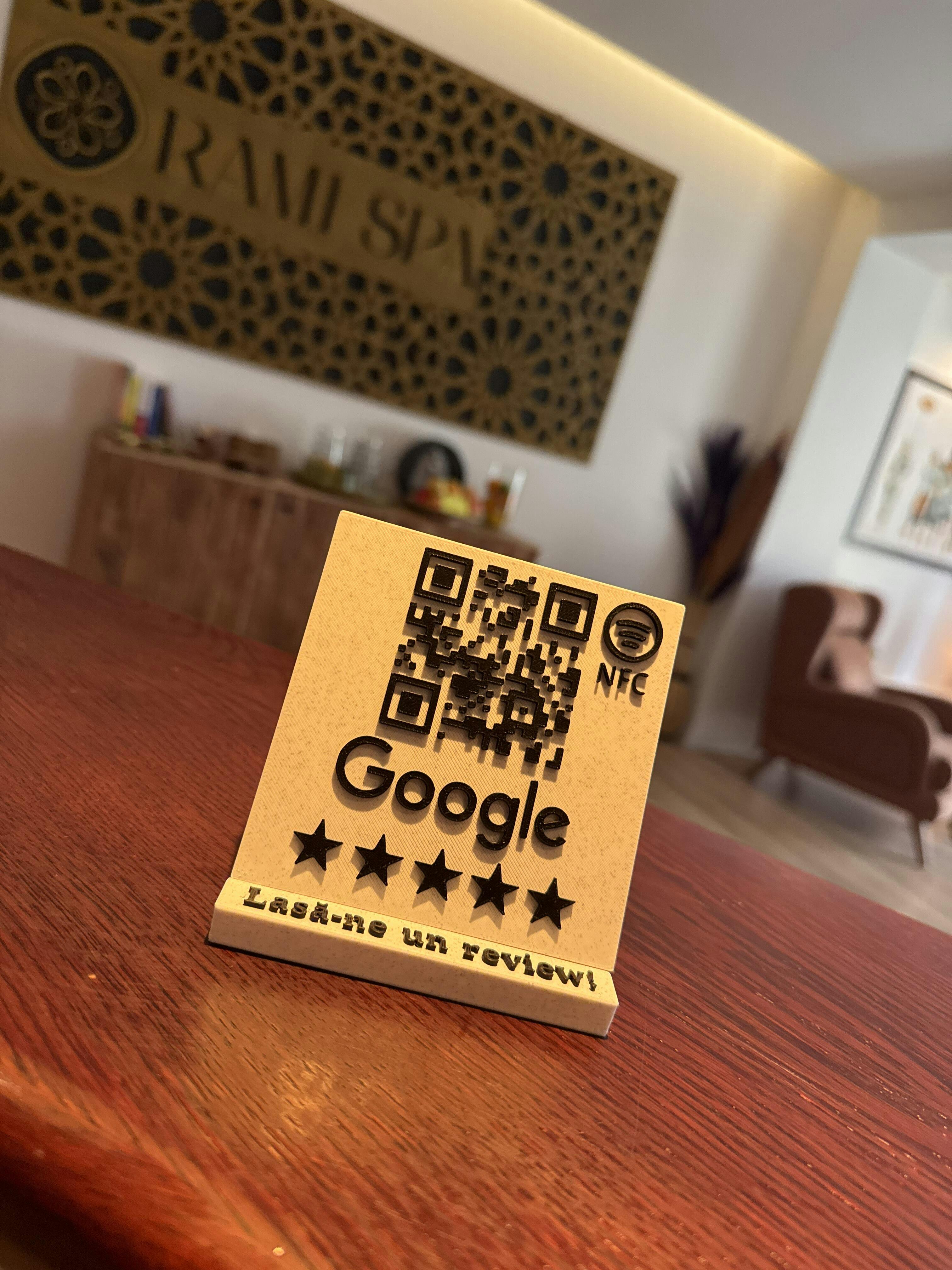 Prezentăm standul nostru inovator cu cod QR și NFC pentru recenzii Google Maps - soluția perfectă pentru a-ți consolida prezența online și a crește satisfacția clienților.