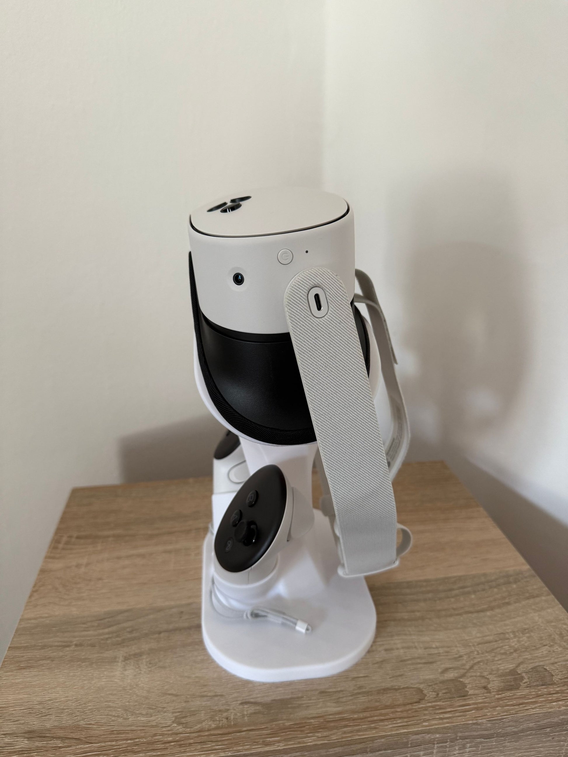 Acest suport a fost conceput special pentru a menține echipamentul tău VR ordonat și protejat. Designul său robust oferă stabilitate și un aspect plăcut, iar micile detalii – cum ar fi locașurile pentru paduri de protecție – sporesc confortul zilnic.