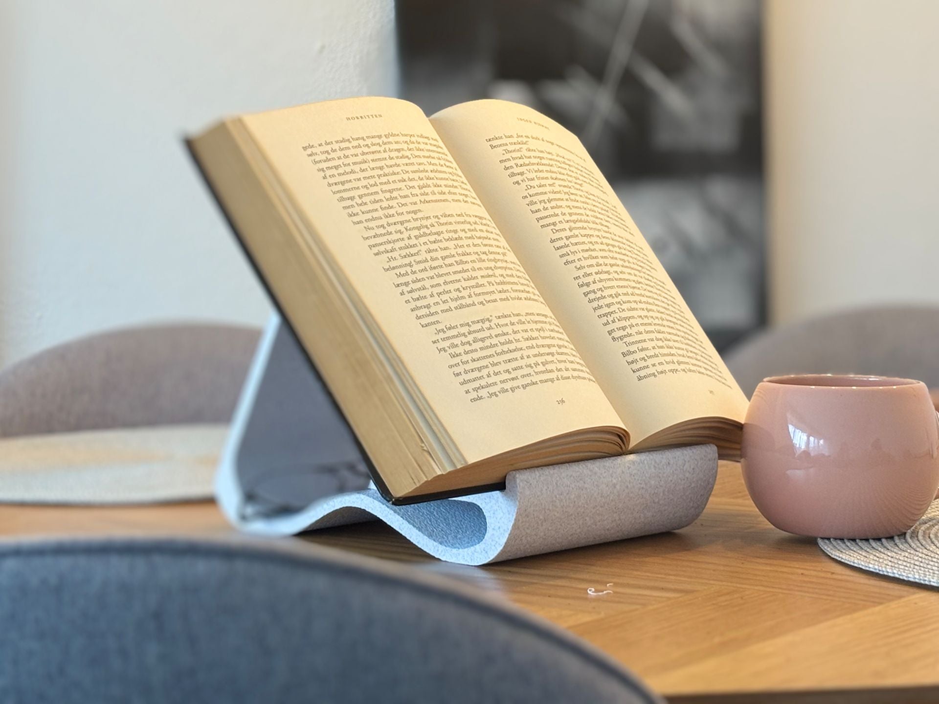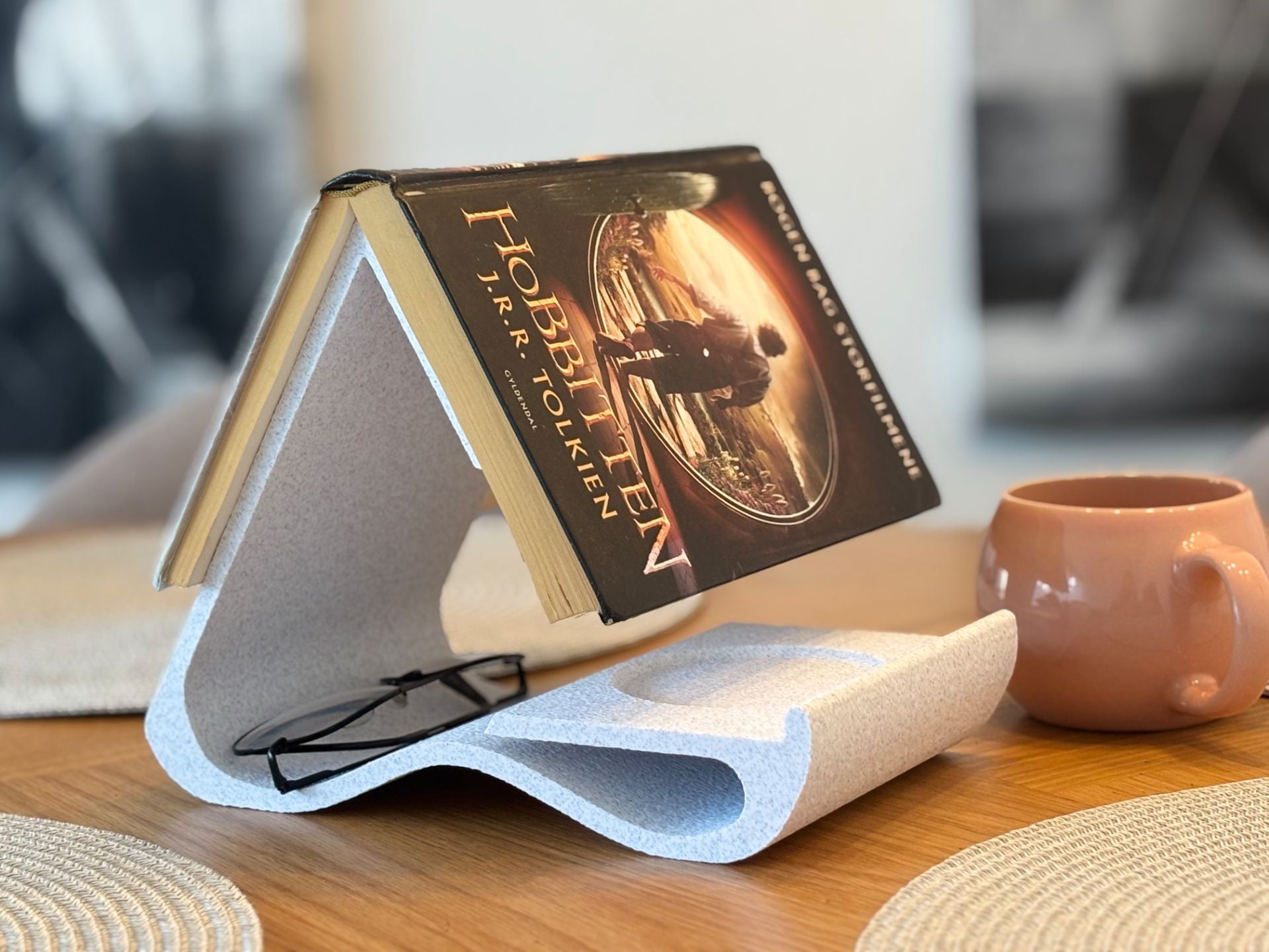 Acest suport de carte aduce un plus de eleganță și funcționalitate colțului tău de lectură! Cu un design curbat, inspirat de valurile mării, este ideal pentru a susține cărțile tale preferate deschise și pentru a-ți ține ochelarii la îndemână.